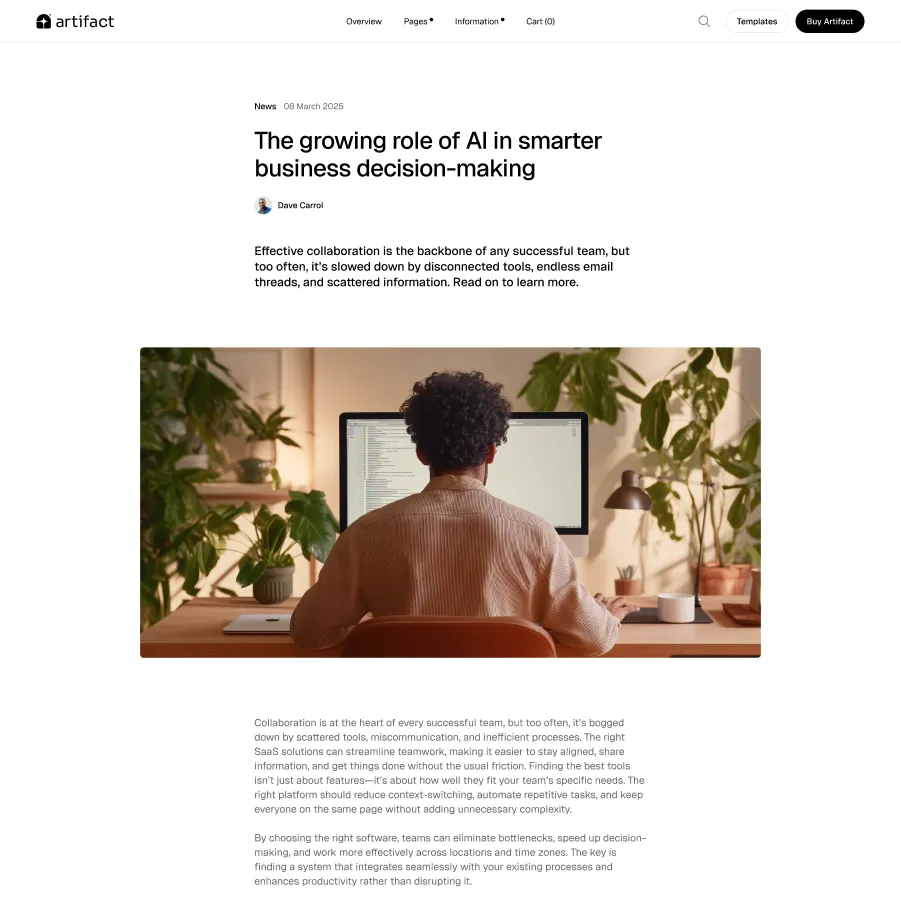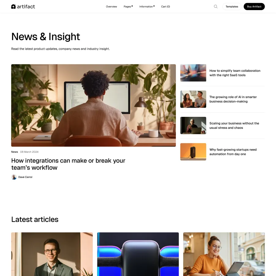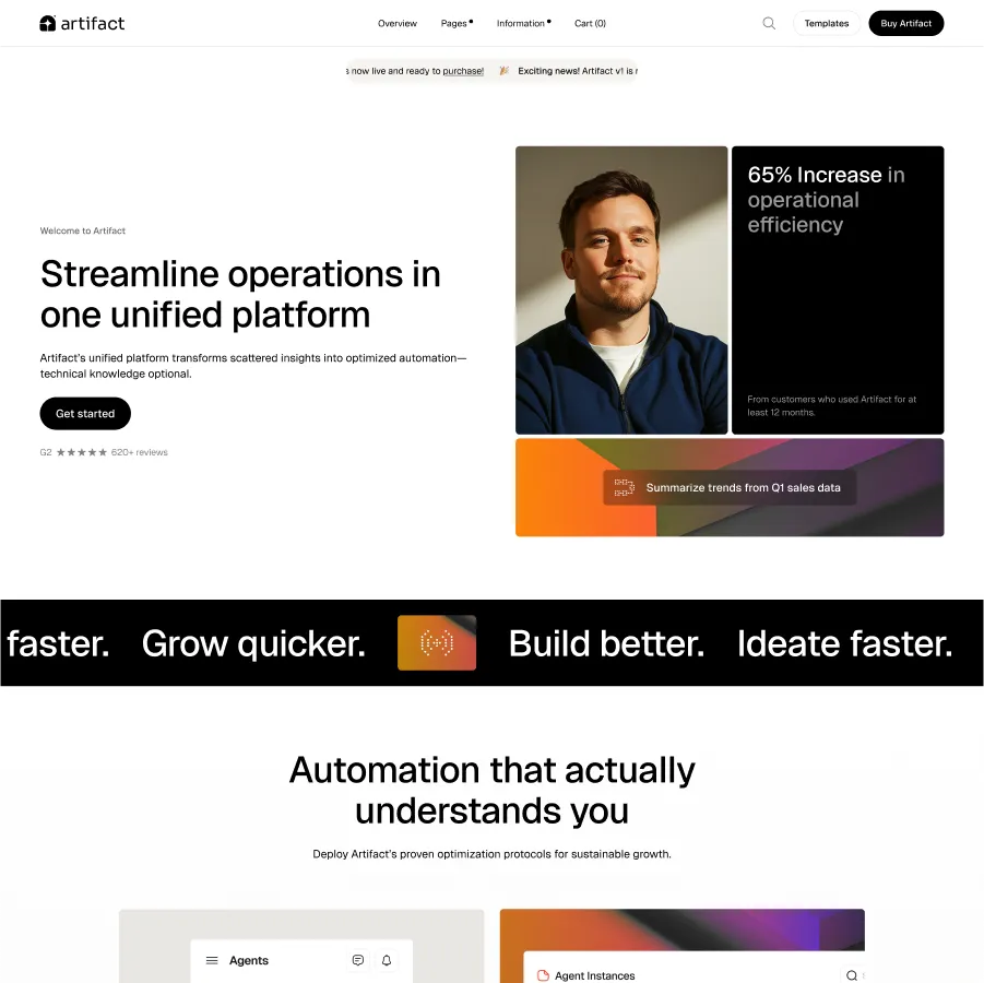 Artifact is brimming with premium layouts and sections designed with true purpose.
